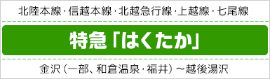 北陸の金沢から上越の越後湯沢を結ぶ特急「はくたか」は、この区間を最速2時間半ほどで結ぶ。