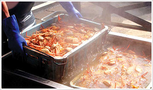 カニの釜揚げは普段なかなか見学できないが、平成25年1月5日〜2月17日の土・日曜・祝日を中心(観光バス「越前すいせん号」運行日)に、東尋坊商店街の「夕なぎ」が12時30分頃から実演公開。