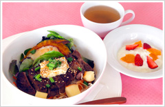 まきば園には5軒の飲食店も。山麓館農場レストランで味わえる、いわてDC(デスティネーションキャンペーン)限定メニュー(11月4日まで)の「まきばのステーキ丼」は、小岩井農場の牛肉を自家製バターなどで料理したジューシーな一品。1500円
