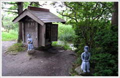 カッパ淵の祠は、子持ちの女性がお乳の出るよう願をかけると叶うとか。遠野にはカッパ淵以外でも、ポストの上や道の足跡などでカッパの気配を感じられるので、探してみて。