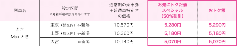 「お先にトクだ値スペシャル(乗車券つき)」 |