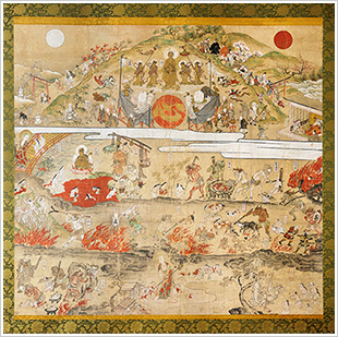 お盆の精霊迎えの行事「六道参り」で有名な六道珍皇寺。今回は江戸期の地獄絵『熊野観心十界曼荼羅』(写真)や修復後初公開の中国・明時代の道教の美術絵画『焔口餓鬼図(えんくがきず)』を公開。