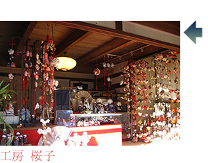 工房 桜子では、伊豆の伝統工芸でもある「つるし雛飾り」や和布の人形、小物を創作している。予約制の体験コーナーもあり、古民家カフェも併設。営業時間9:00~18:00 不定休 TEL.0558-25-3301