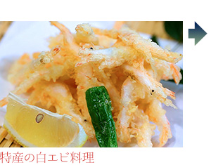 「富山湾の宝石」とも称される富山特産の白エビ。市内の飲食店では、お刺身や昆布ジメ、かき揚げ料理など、ご当地ならではの味が楽しめる。漁期は4~11月。