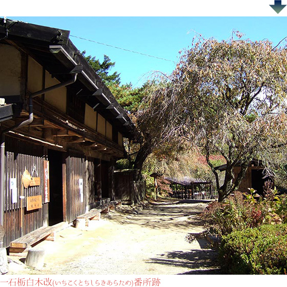 木材や木工品などの出荷を取り締まる白木改の番所跡で、当初は妻籠寄りの下り谷にあったものが、この一石栃に移された。宿場と宿場の中間に設けられた休憩所の立場(たてば)茶屋の遺構も残る。
