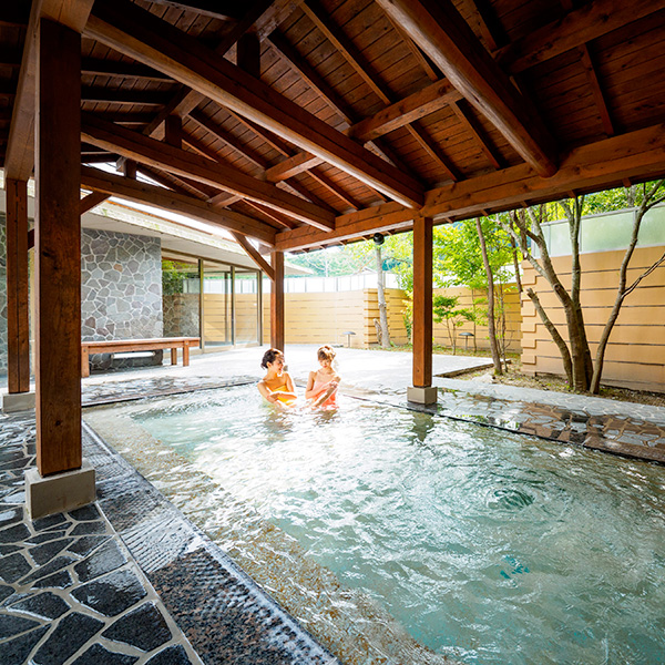 西日本有数の温泉地として人気を集める美作三湯のひとつ(ほかに湯郷温泉・湯原温泉)。奥津温泉は川沿いに風情ある老舗旅館や民宿が並び、ほとんどの宿が自家源泉をもつ。アルカリ性単純温泉の湯は漂白成分を含み、湯上がりは肌が白くすべすべになる。写真は日帰り入浴施設の「花美人の里」。