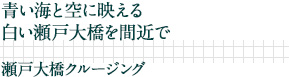児島観光港を出航し、瀬戸内海の島々を抜けながら与島の手前までクルージング。瀬戸大橋を海の上から間近に眺め、大迫力。橋をくぐりながら、真下からその造りを眺めることができる。11月19日まで土・休日中心に「瀬戸内海の夕景と水島コンビナート夜景クルージング」の開催も(要予約)。
