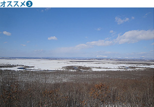 サルルン展望台は、雄大な釧路湿原を走る釧網本線の光景が印象的なビュースポット。釧路行きの「SL冬の湿原号」は茅沼駅14:19発。その頃にあわせてサルルン展望台に上り、SLを再び撮影すれば、より満足感が大きい。しかし、駐車場から徒歩30分以上かかり少々大変。鉄道とのコラボはないが、