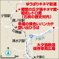 - 幸福の黄色いハンカチ想い出ひろば⇒清水沢駅から社光行きバス6分の黄色いハンカチロケ地前下車