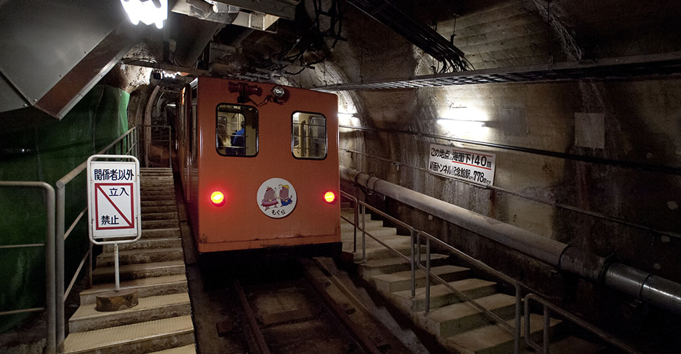 青函トンネル掘削時の軌跡を、当時の資料をもとに映像や立体モデルなどを交えて展示。ケーブルカー「青函トンネル竜飛(たっぴ)斜坑線 もぐら号」に乗り込んで、海面下140mの「体験坑道」へ。作業坑として使われた一角に、実際に使用された機械類を展示しており、トンネル掘削当時の雰囲気を体感できる。