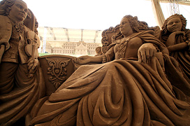 最後の目的地は鳥取駅からバスで20分。鳥取砂丘の「鳥取砂丘情報館サンドパルとっとり」で開催中の“第3期・砂の美術館”へ。マリアテレジアやウィーン国立歌劇場などオーストリアをモチーフとした彫刻を観賞する。