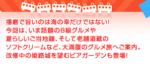 「五輪書」によると、宮本武蔵の出生地と言われる播磨国(はりまのくに)。その武蔵よろしく、播磨の美味しいものをバッタバッタと切り倒していく、ムシャムシャ修業の旅へいざ参ろう!
