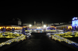 神戸イルミナージュは、噴水や洋風建築、花壇などとの融合が見事な関西最大級のイルミネーション。写真はルネサンス広場。TEL.06-6452-0808(日本イルミネーション協会)。1月17日まで開催。17:30~22:00(点灯は~21:30)、期間内無休。1000円