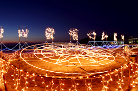 白良浜の約300mが、赤や青、白など約10万球による光の造形で彩られる「白砂のプロムナード」。TEL.0739-43-5511(白浜観光協会)。12月1日?1月31日、17:00?22:00。観賞無料