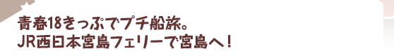 やがて前者にはトンネル、後者には橋が建設され、北海道も四国も本州とレールでつながり、これらの連絡船は姿を消した。もう青春18きっぷで船旅はできないと思いきや、まだまだ宮島口と宮島を結ぶ宮島連絡船(宮島航路)があるではないか!