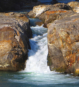 宇連川(うれがわ)の渓流沿いにある湯谷温泉。宇連川は川底に石の板を敷いたように見えるところから板敷川の別名も。湯谷のあたりの渓谷は鳳来峡と呼ばれ、写真の大滝をはじめ美しい風景が続く