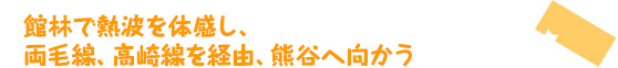 | 熊谷 着 | 16:37 | 熊谷の名物「雪くま」で一息!(土休日は16:39着) | |