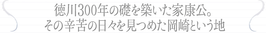 権謀術数渦巻く、過酷な戦国時代を生き抜き、徳川300年の繁栄の礎を築いた家康公。生誕の地である岡崎市を訪ねると、その生涯が決して幸せな光にのみ包まれたものではないことが伝わってきます。