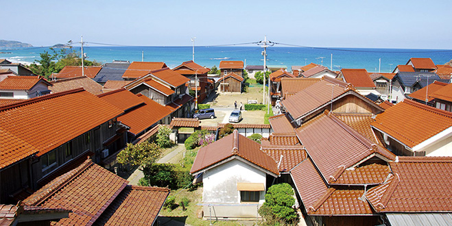 江津本町甍街道のほか、黒松町(写真)、波子町など、石州瓦の美しい風景は江津市のあちこちで見られる。