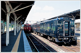 吉松駅からは特急「はやとの風」の旅だ。盆地も束の間で、栗野駅からは再び山間部に入り、車窓左に栗野岳を見ながらアップダウンを繰り返して大隅横川駅に到着する。霧島温泉駅は霧島温泉郷の下車駅。次の嘉例川駅は、県内に現存する最古の木造駅舎。さらにアップダウンを繰り返しながら山を下り、日当山駅を過ぎ、錦江(きんこう)湾を車窓左に見ながら隼人駅に到着する。