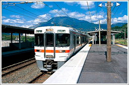 近江長岡駅に停車する313系電車。平成11年から運転を開始したJR東海の新型車両で、写真のように2両編成でも運転できる。東海道本線をはじめ、同社エリア内の多くの電化区間で幅広く活躍している