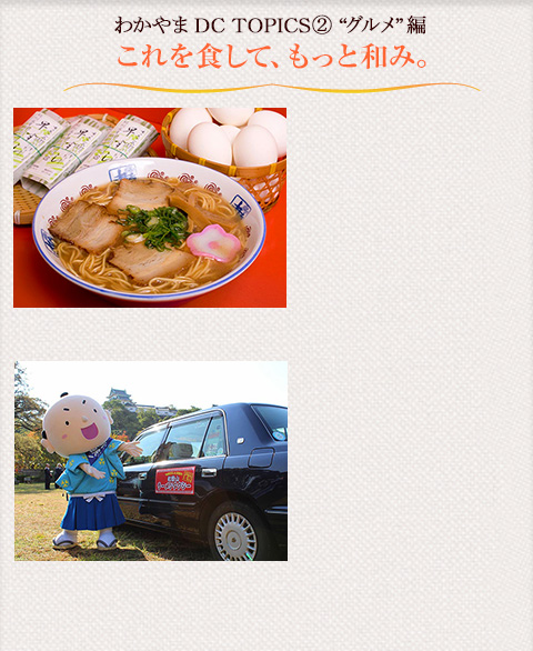 ご当地麺として全国的に有名な和歌山中華そば・ラーメン。その味には主に2種類の系統があり、ひとつは濃い茶色したスープだが、味わいは意外とあっさりの醤油系。ふたつめはコクのあるまろやかな豚骨スープと醤油が味わい深い豚骨醤油系。この両者の範疇に収まらない新店も最近は増加中のため、何店かはしごしたい人も多いのでは? そんな人におすすめなのがラーメンタクシーだ。和歌山市が実施の研修や試験を通過した認定タクシードライバーが、客の好みに応じて店を案内してくれる! タクシーで3店舗をめぐる「半玉ラーメン味めぐり」も開催中!