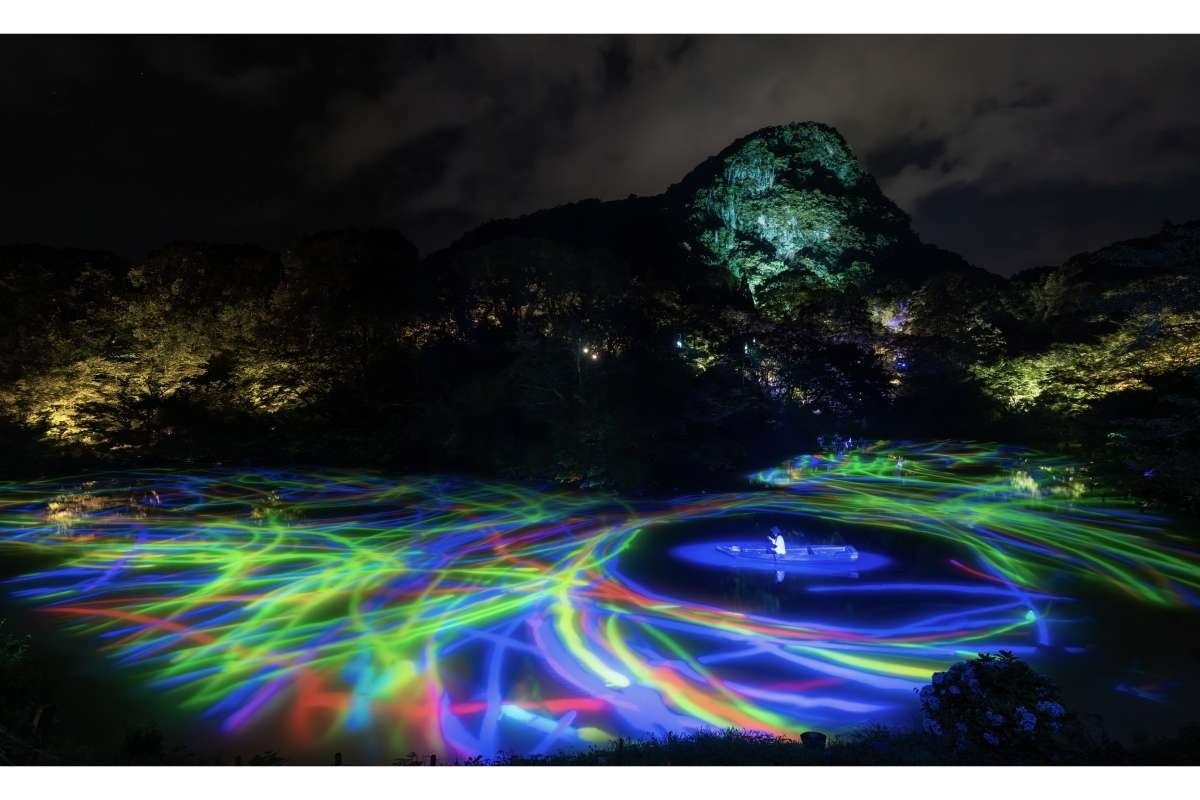 2015年に武雄温泉楼門の創建100周年を記念して始まったイベント「武雄のあかりめぐり」。今年で11回目の開催となり、御船山楽園の「チームラボ かみさまがすまう森」は、新作を含めた28点の光のアートは見ごたえたっぷりです。