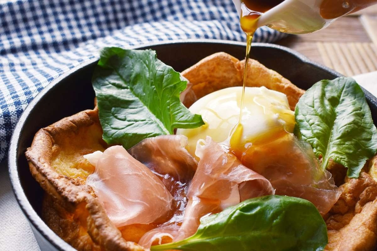 ドイツ風のパンケーキ「ダッチパンケーキ」1100円(R)・1650円(L)外はカリカリ、中はモチモチ