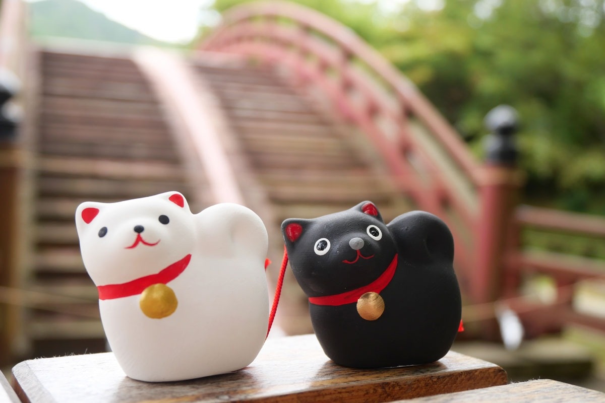 丹生都比売神社は、御祭神が弘法大師・空海に高野山を授けた際、ご神犬が大師を導いたことから、白と黒のご神犬が神さまの使いとされています。