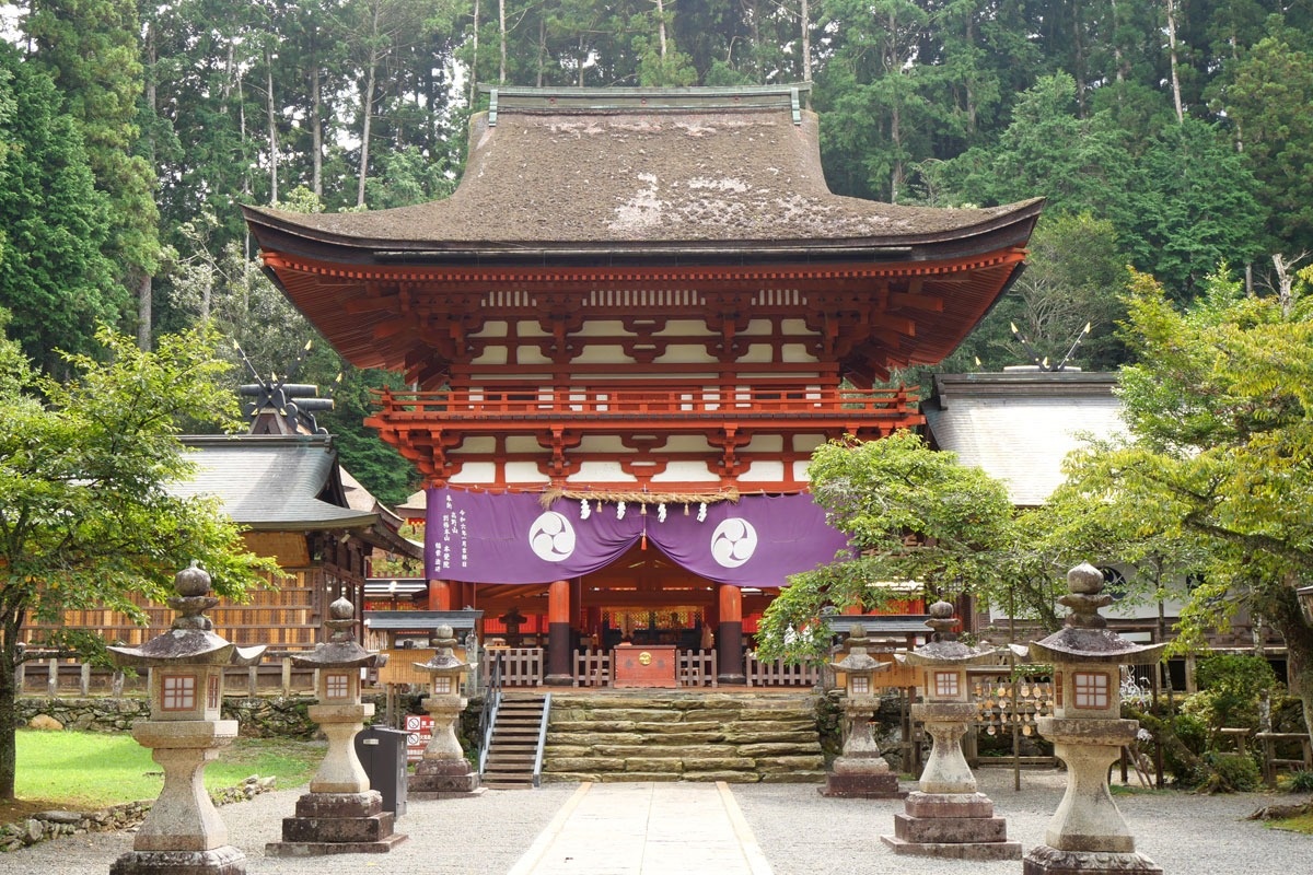 天野の豊かな自然に抱かれた境内では、緑に映える社殿が美しくも荘厳な姿を見せてくれます。