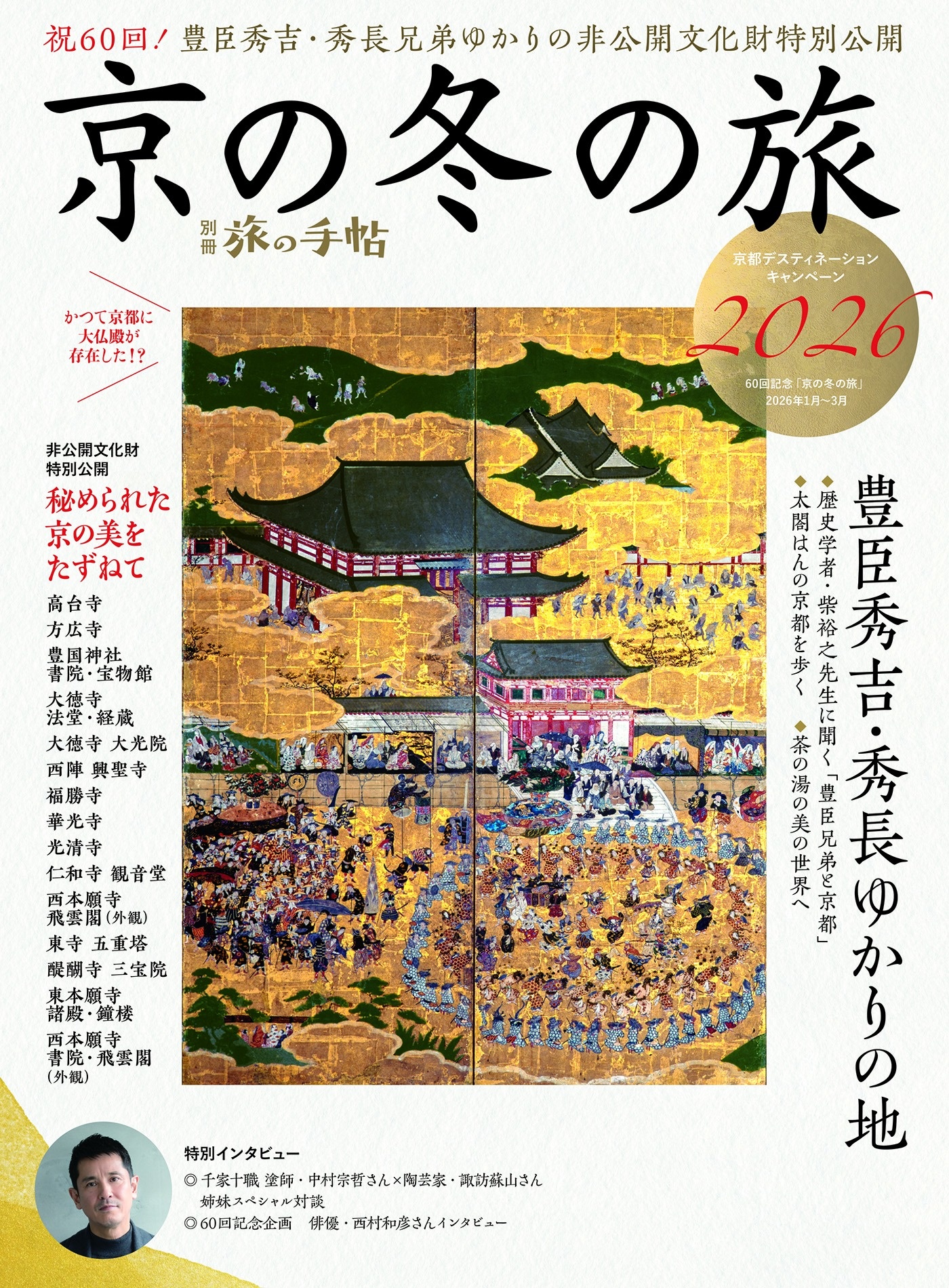 また、巻頭企画では、千家十職の塗師・中村宗哲さん、陶芸家・諏訪蘇山さんの姉妹スペシャル対談、60回記念企画として京都出身の俳優・西村和彦さんのインタビューを掲載。「京の冬の旅」を事前予約で楽しめるプランや特別イベント情報にも注目です。