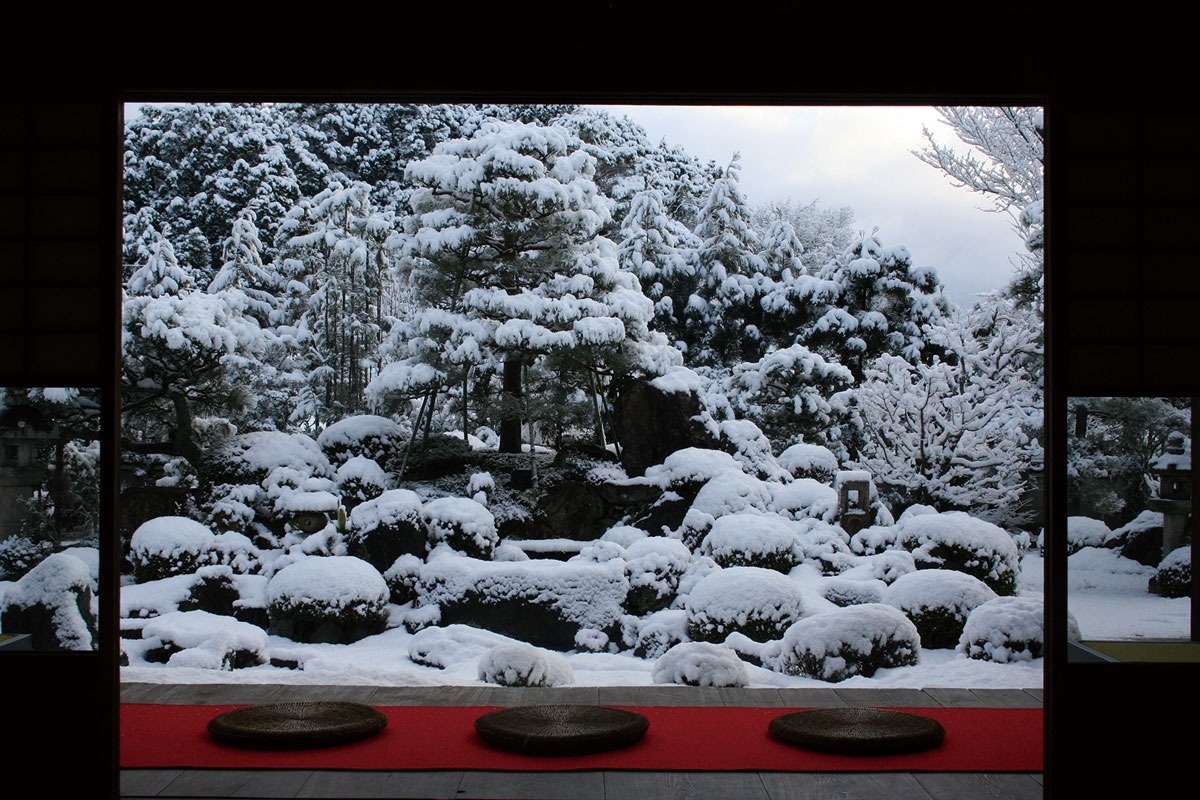 「雪の庭」。日本初となる正式俳諧興行が行われた俳諧 (俳句) 発祥の地