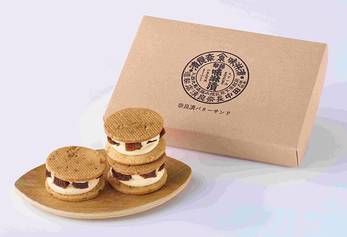 寛政元年(1789)創業の奈良漬の専門店。伝統技法で約2年かけて仕上げる「都錦味淋漬(みやこにしきみりんづけ)」は、みりんの風味とコクが特徴。瓜や茄子、胡瓜など野菜を用いた定番はもちろん、注目の「奈良漬バターサンド」もおすすめ。