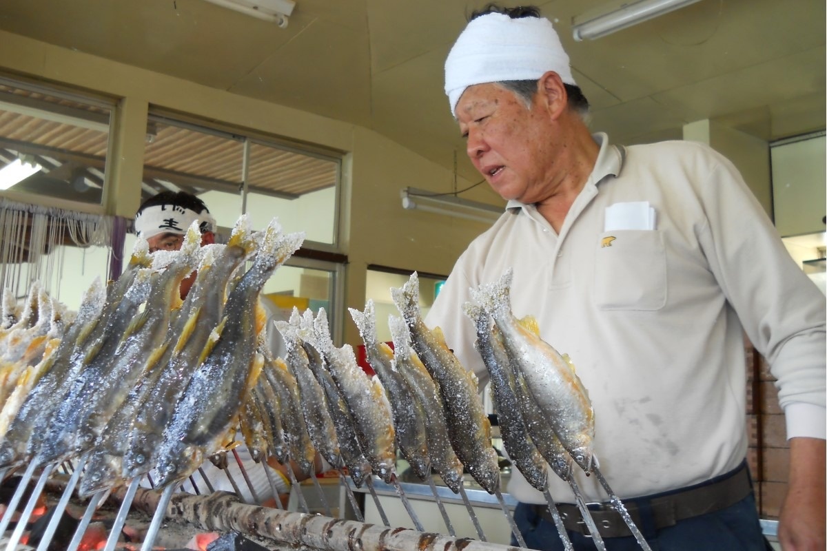 秘境グルメ:<飛騨古川観光ヤナ>清流が育むアユをよりおいしくするタテ串とは?