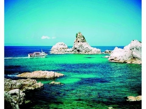 日本海の荒波が創造した美しい海岸線。村上市浜新保の鳥越山から寒川の狐崎まで約11kmを指す。眼鏡岩、獅子岩、びょうぶ岩など数多くの奇岩があるので、桑川駅から徒歩15分の「笹川流れ遊覧船」1000円を利用して海上から間近に眺めるのがおすすめだ。