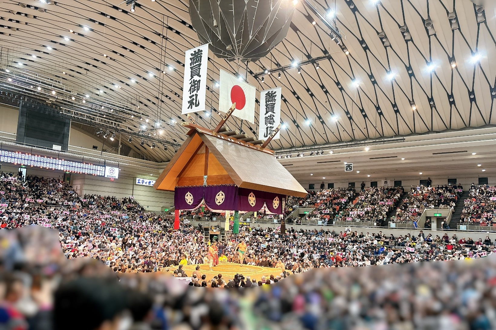 相撲の観戦マナーについて、たくさん決まりがあるのではと心配する方も多いのですが、そんなことはありません。ドレスコードはないし、溜席でなければ席での飲食も声を出しての観戦もOK。ぜひ気軽に足を運んでください。2点だけ、配慮してほしいことを書いておきます。