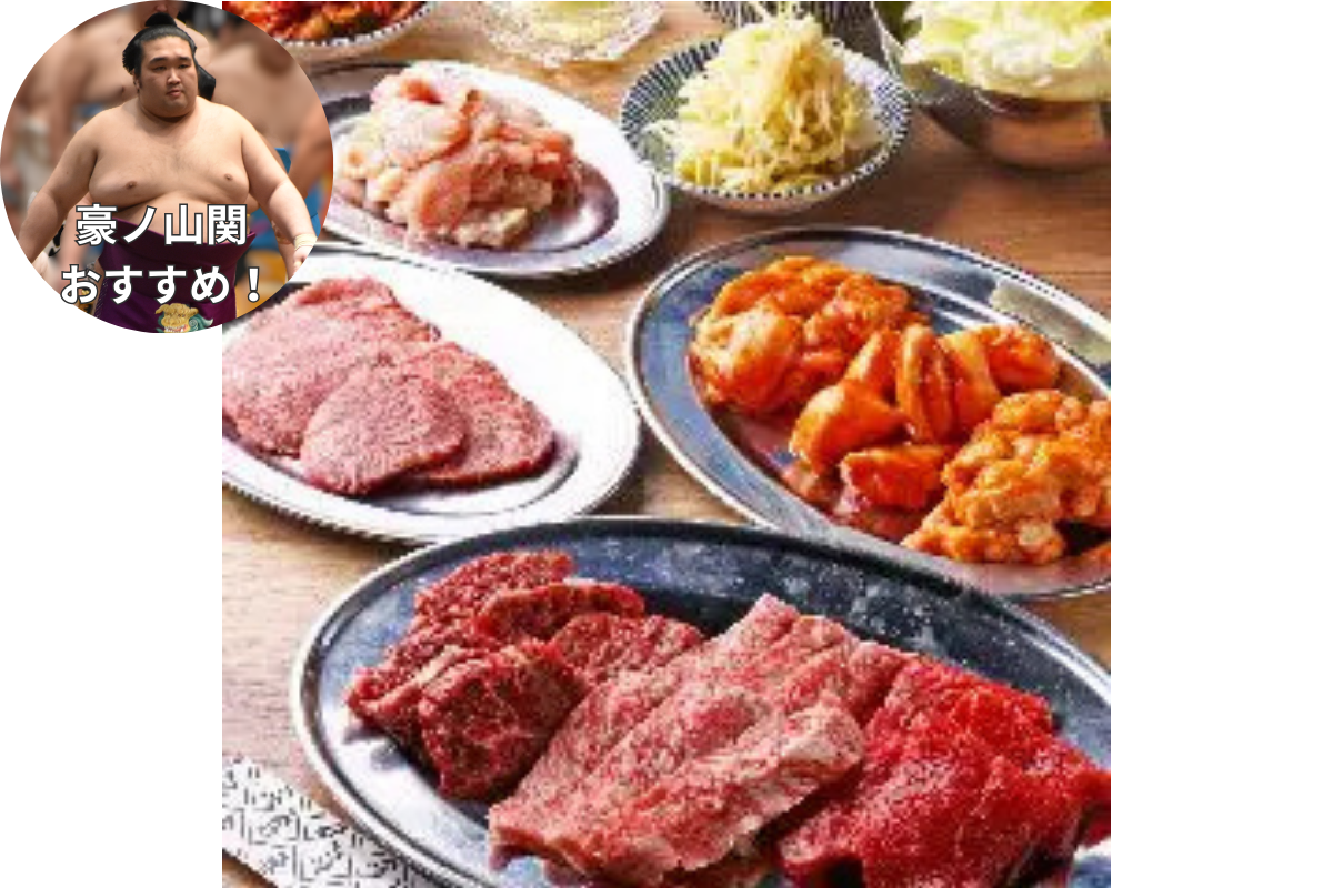 もうひとり、行きつけを教えてくれたのは、宇良関と同じ寝屋川市出身の豪ノ山関。部屋の宿舎近くにある焼肉屋「炭火焼肉 大日大万大吉」を教えてくれました。「普段は、付け人と一緒によく行きます。必ず頼むのは、塩タン、特上ハラミ、上レバーです」とのこと。たくさんの焼肉店を知るお相撲さんがおすすめするお店は、絶対に間違いありません!
