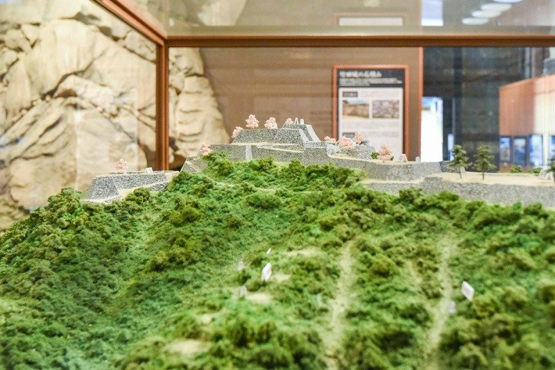 竹田城跡鳥瞰模型。普段は見られない大堅堀や登り石垣なども再現されています
