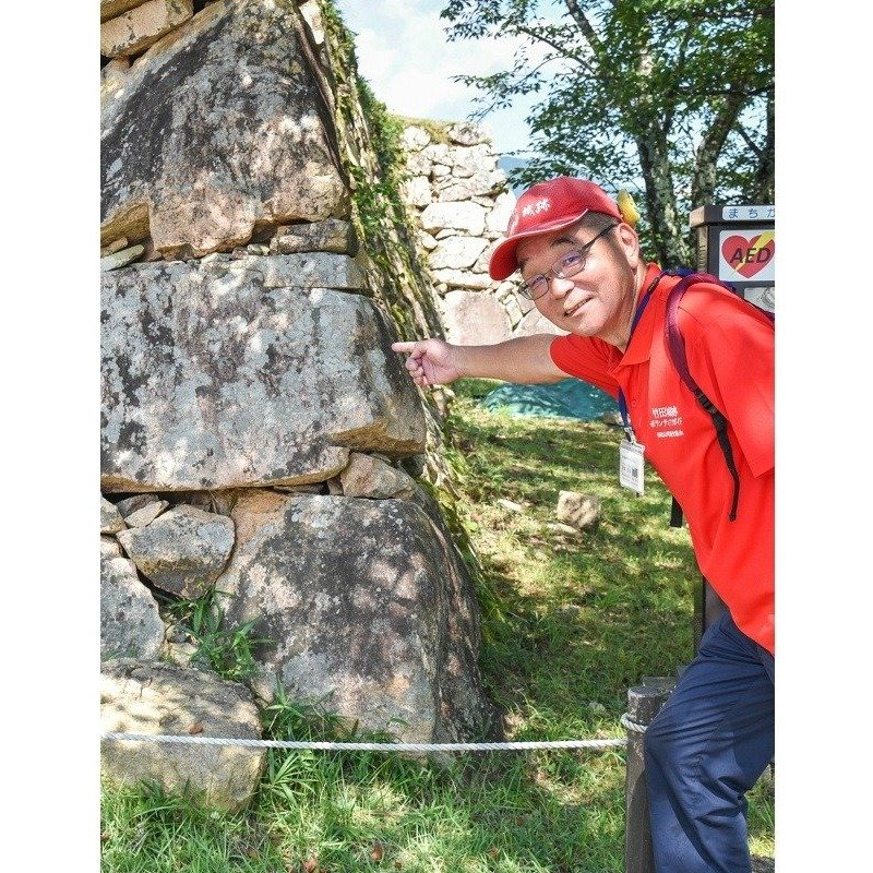 「戦国末期の山城でこれほど完全な形で残る石垣群はほかにありません。また、通常は花屋敷曲輪へは入れませんが、豊臣秀吉が築いた名護屋城と同じ石塁が残る様子を見下ろせます」と、竹田城跡ボランティアガイドの坂本弘幸さん。