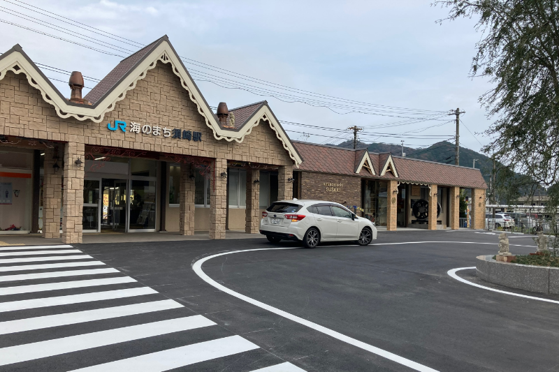 須崎市の玄関口で、土讃線の重要な拠点駅のひとつである須崎駅は、2021年12月にリニューアル。英国風の三角屋根が特徴的なレトロな趣の駅舎に、駅舎内も「海のまち」の名にちなんだ船のオブジェやアンティーク品で装飾されています。高知県の鉄道発祥の地としての歴史もあり、D51の動輪が設置されているのも見どころです。