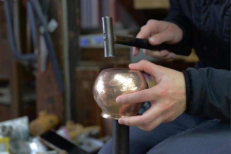 銅を叩いて成形するのも職人の勘が頼り