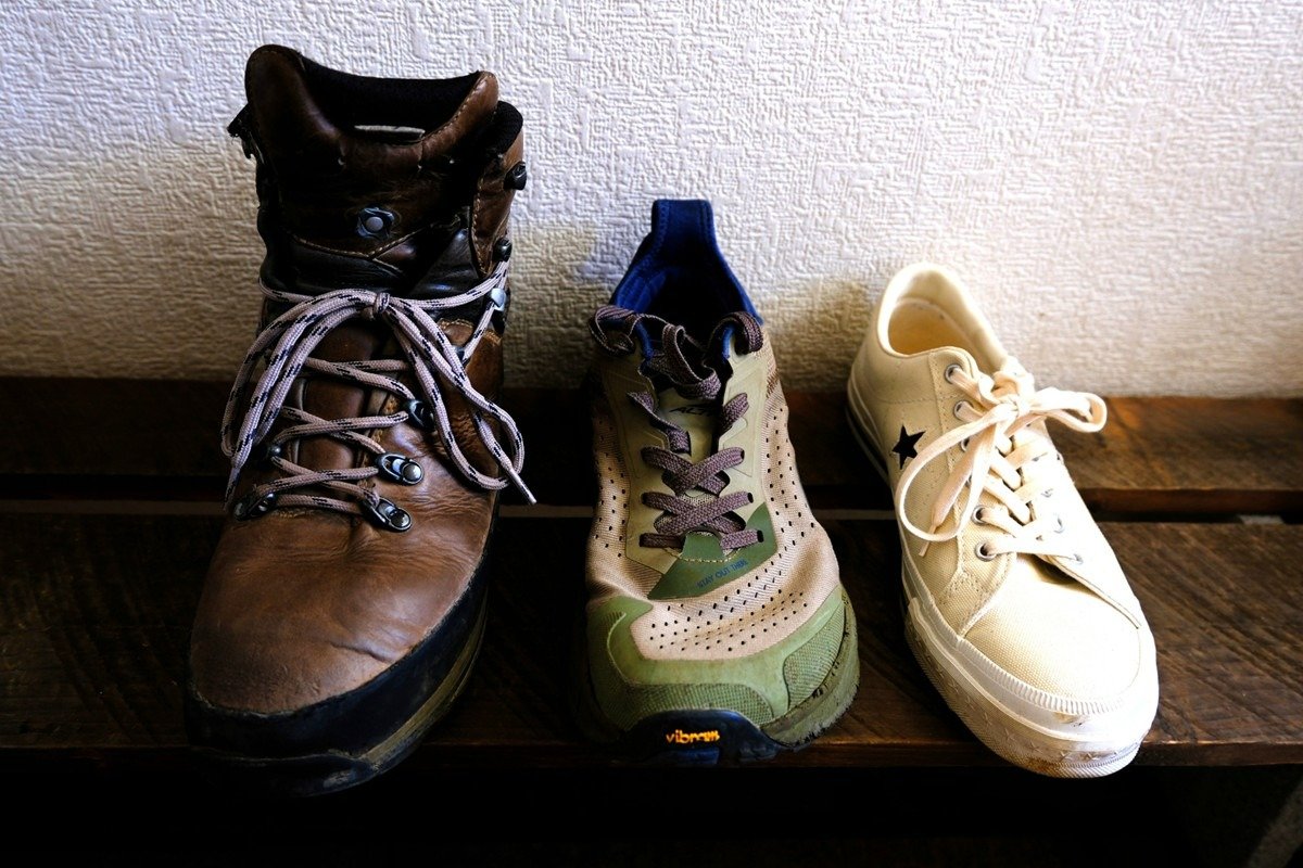 - ※トップ画像は左からレザー製の登山靴、トレイルランニング用のシューズ、一般的なスニーカー