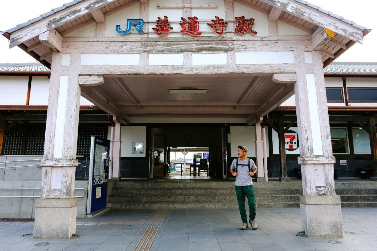 旅のはじまりは、土讃線善通寺駅。なんとこの駅舎、国の登録有形文化財です。開業は1889(明治22)年の5月という古さ。今年は2025年だから、すでに136年の歴史!いきなり飛び出したご当地トリビアに、今回の旅の濃さを予感せずにはいられません。