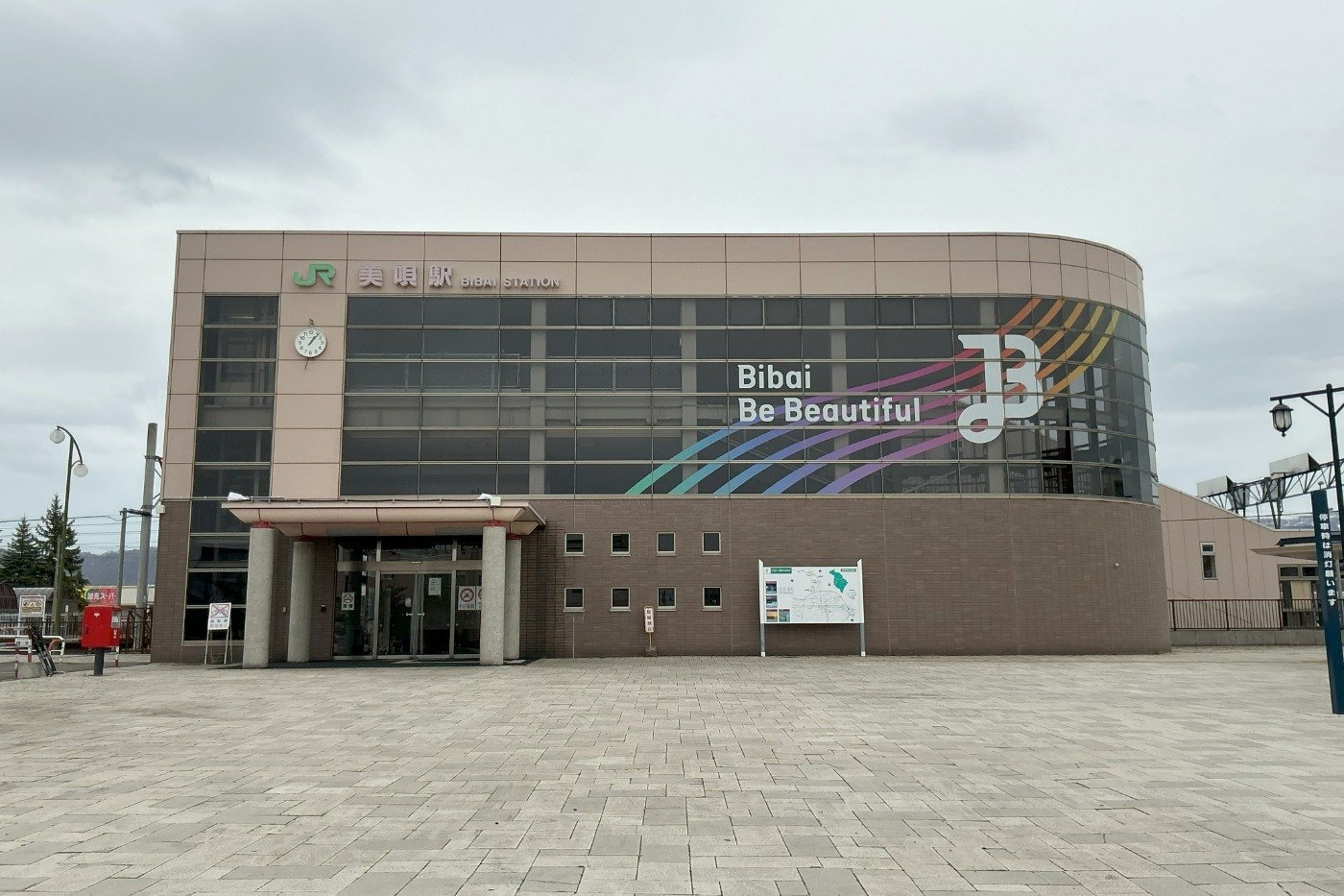 2025年に駅舎西側の壁面をリニューアルし、まちのシンボル「Bibai Be Beautiful」の文字をあしらったデザインに刷新しました。