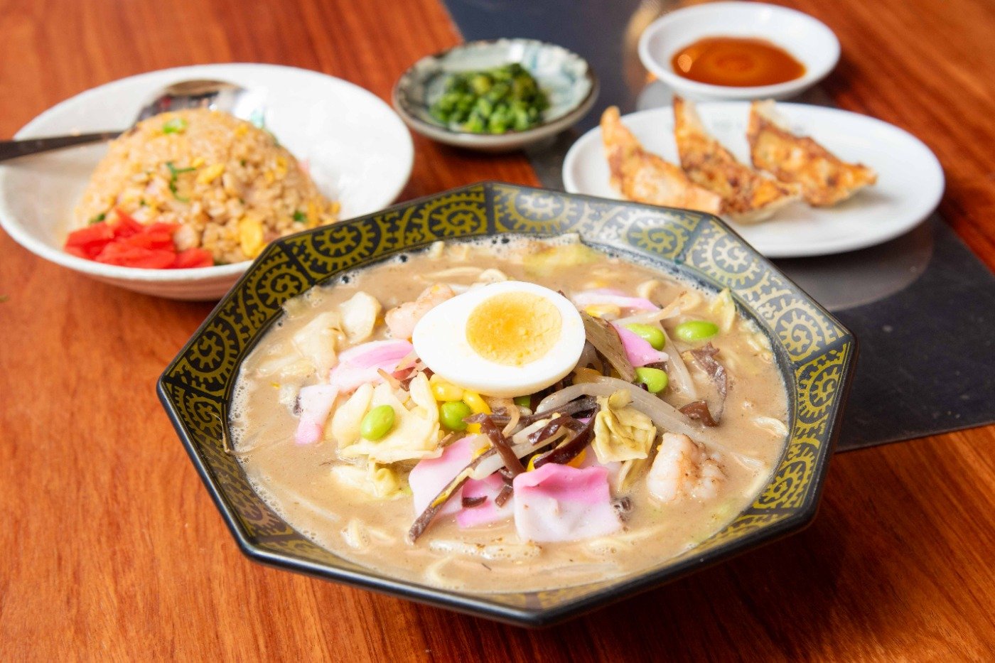 「大野は手軽にランチが食べられるお店が少ないというお客様の声を聞き、港町ですから魚を、そして醤油を使える料理で、さらにサラダバーも作って当社のドレッシングも食べていただきたいと考えて、アジフライ定食に辿り着きました」と話すのは、直源醤油社長の直江潤一郎さん。